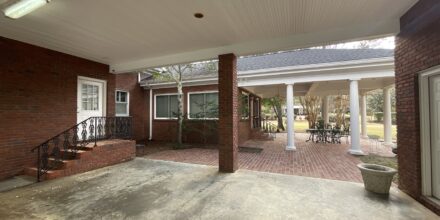 Enjoy outdoor living with a covered brick porch, charming courtyard area, and sunroom. Additional features include outside storage building and multiple interior storage rooms.