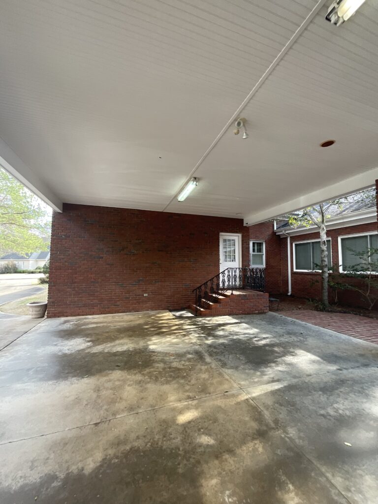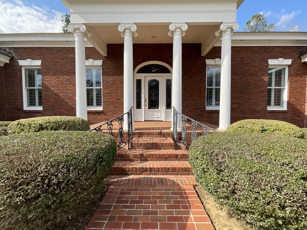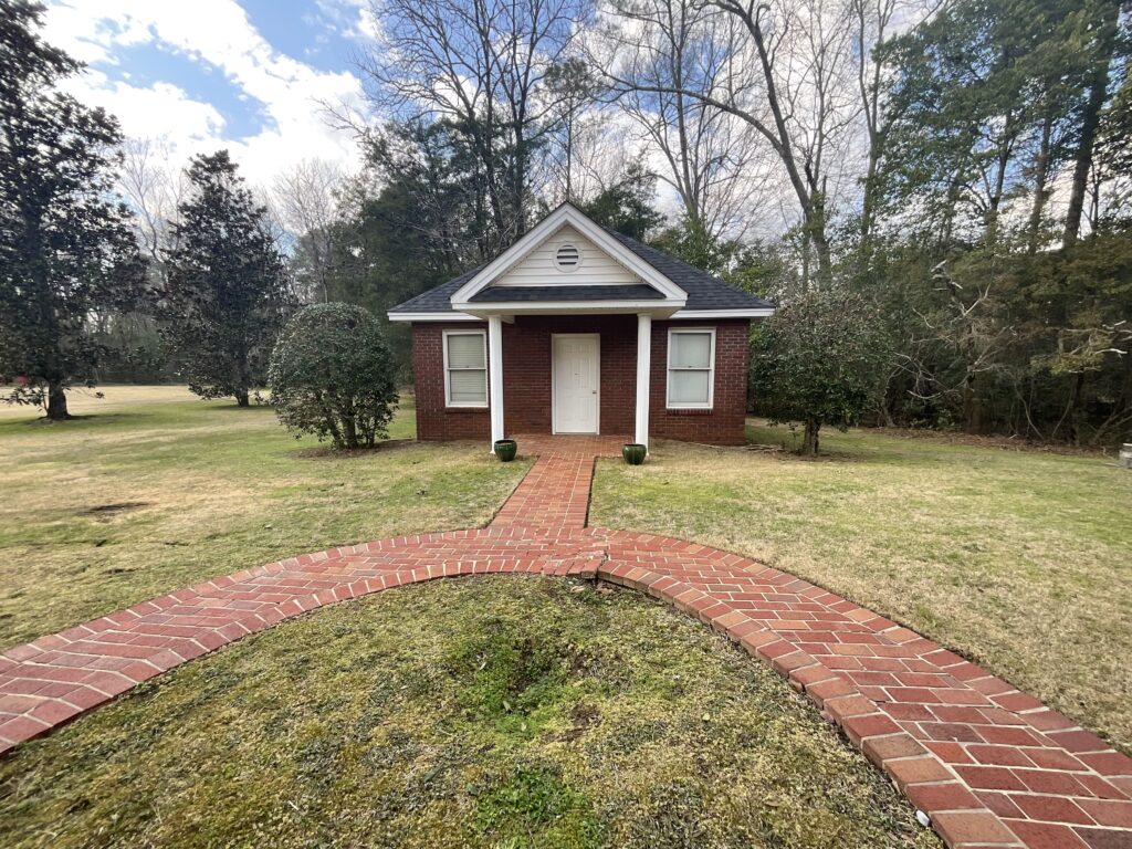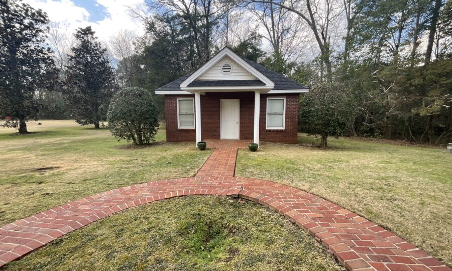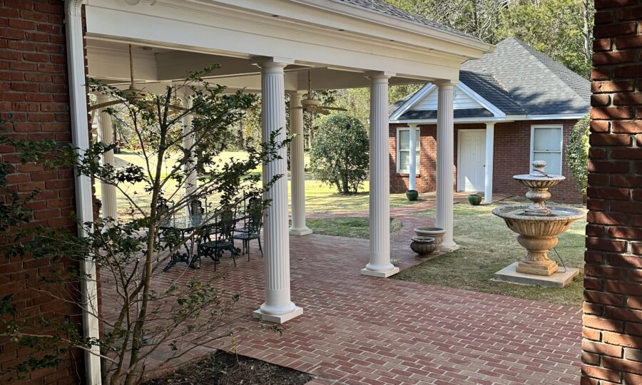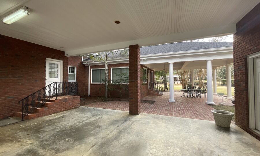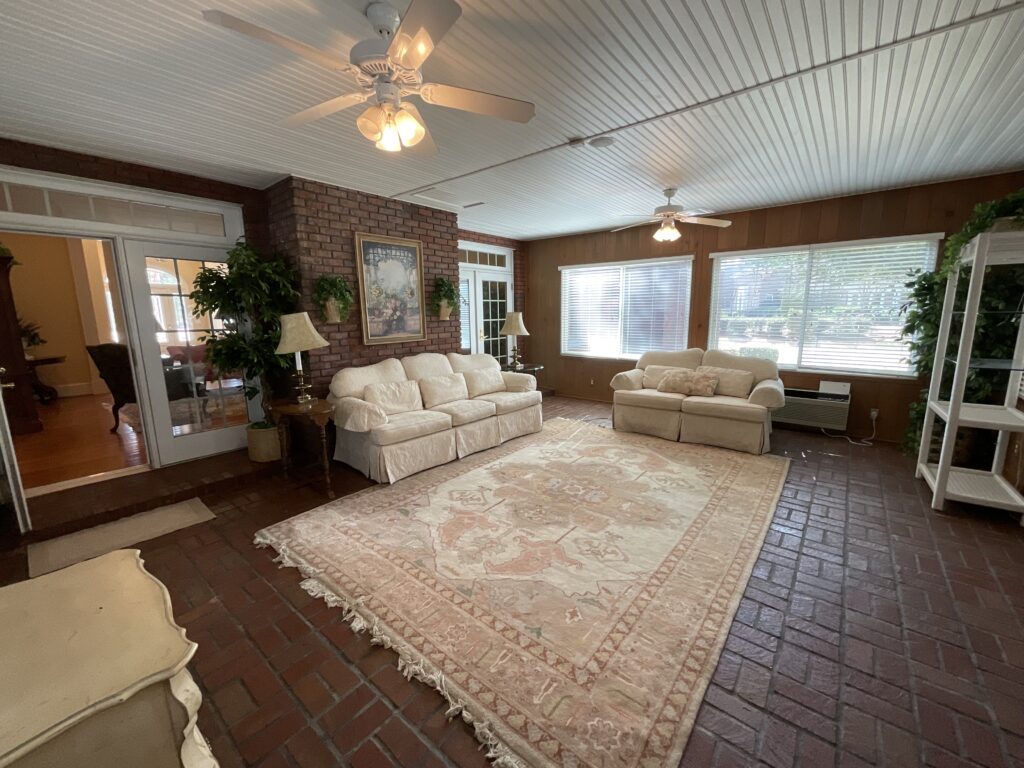 Enjoy outdoor living with a covered brick porch, charming courtyard area, and sunroom. Additional features include outside storage building and multiple interior storage rooms.