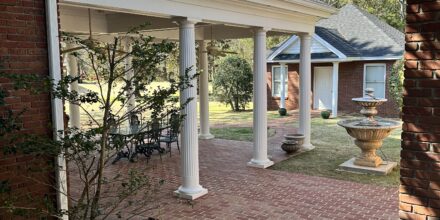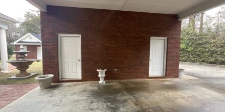 Enjoy outdoor living with a covered brick porch, charming courtyard area, and sunroom. Additional features include outside storage building and multiple interior storage rooms.